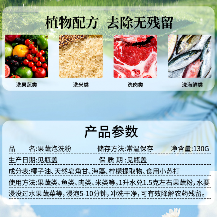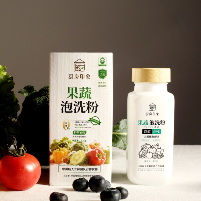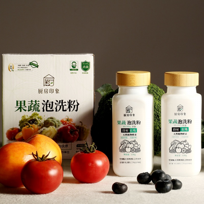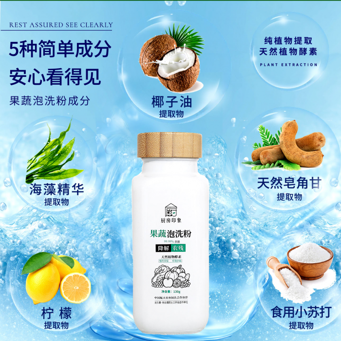 厨房印象果蔬泡洗粉洗水果蔬菜肉类大米专用降解农残孕婴可用植物萃取130克单瓶