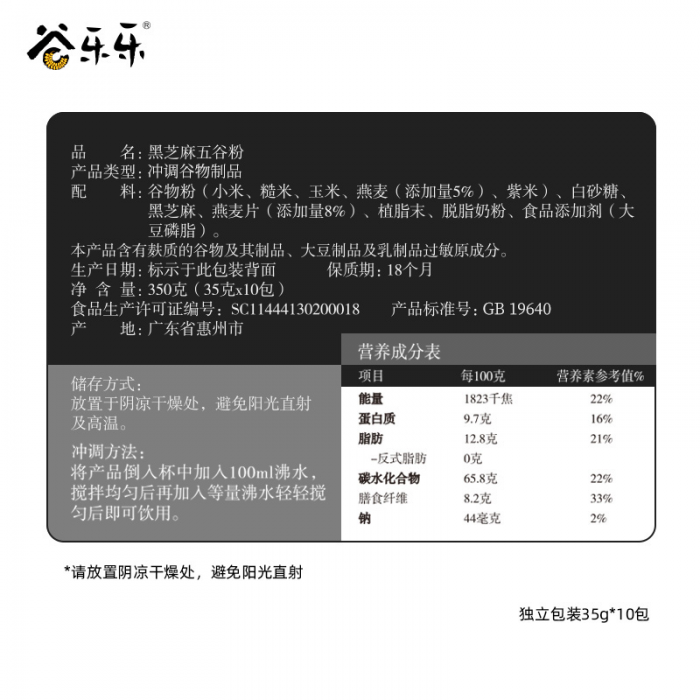 谷乐乐 黑芝麻五谷粉350g