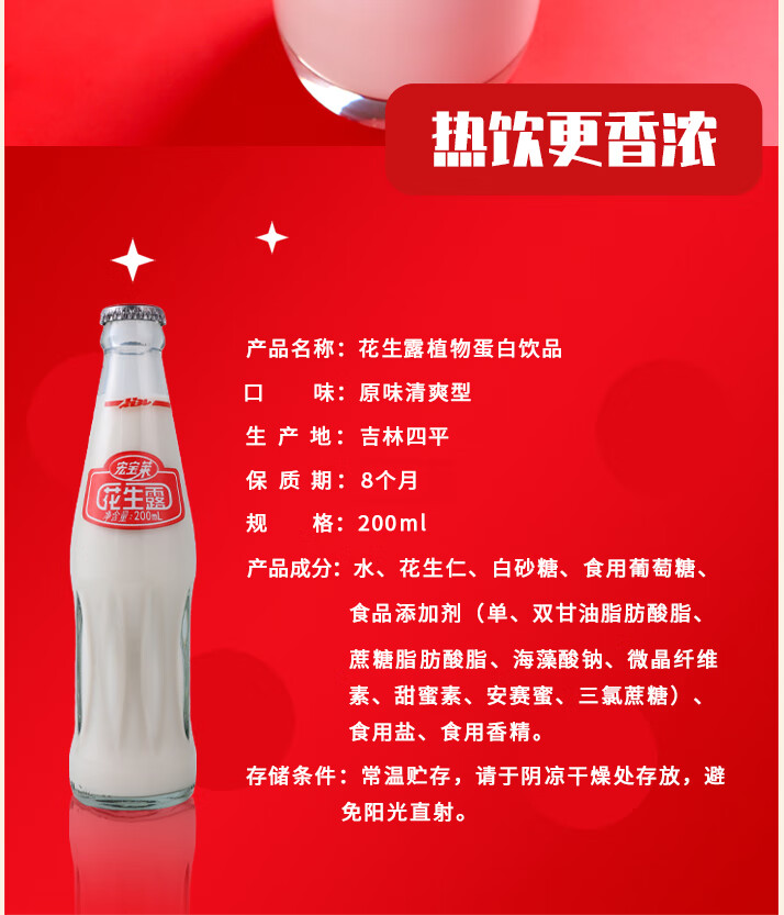 宏宝莱花生露200ml*12玻璃瓶饮品花生味早餐营养植物蛋白饮料整箱【玻璃瓶】花生露200ml*12瓶