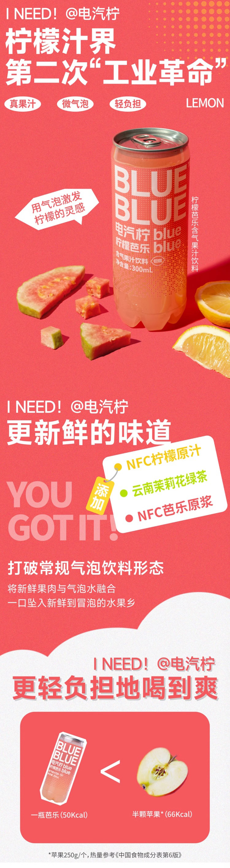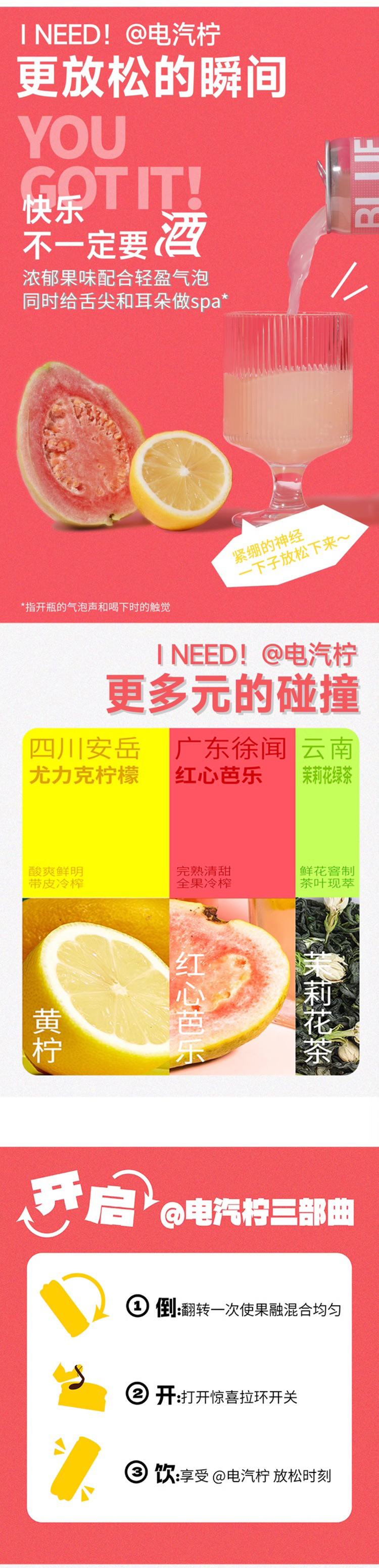 柠檬共和国(Lemon Republic)芭乐气泡汁饮料 300ml*12瓶